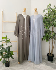 Discover the Dubai Pearl Abaya Set – a luxurious free-size abaya featuring a silky inner and chiffon cardigan with elegant pearl details. Perfect for modest, stylish comfort in Singapore’s weather. Shop now at Samiha Apparels.