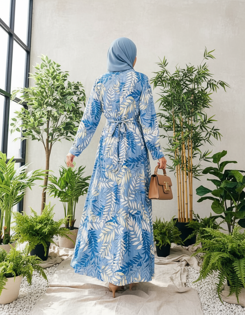 A-Line Maxi Dress – Leaf Modest Elegance with a Touch of Nature