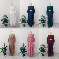 This free-size kaftan features an attached sash for a customizable fit and is thoughtfully made to be both Wudhu friendly and nursing friendly—ideal for modern Muslimah women who value modesty and ease.