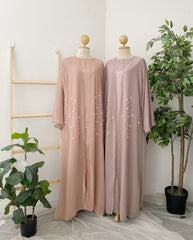 Discover the Dubai Pearl Abaya Set – a luxurious free-size abaya featuring a silky inner and chiffon cardigan with elegant pearl details. Perfect for modest, stylish comfort in Singapore’s weather. Shop now at Samiha Apparels.