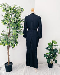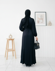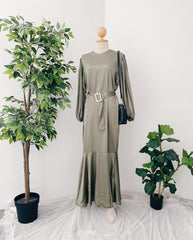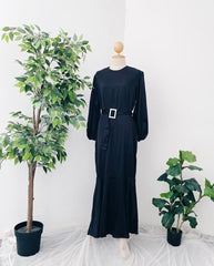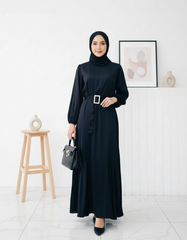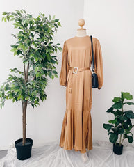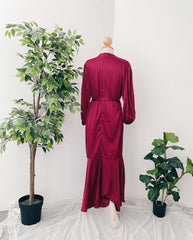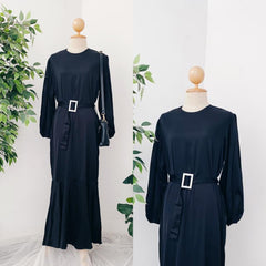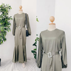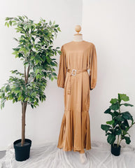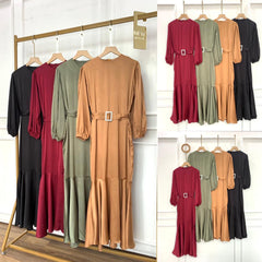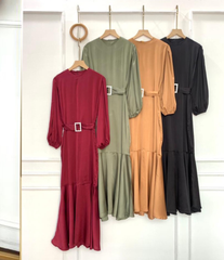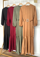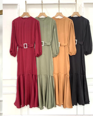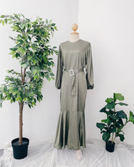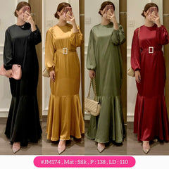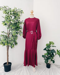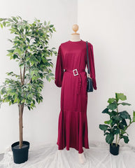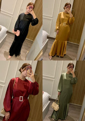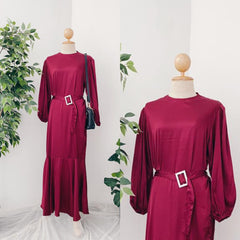 Featuring a round neck, front zipper, separate belt, and a gorgeous ruffle bottom, this dress is sure to turn heads. Made from premium Mat Satin, it's both luxurious and comfortable to wear.
