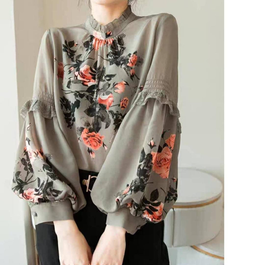Korean Floral High-Cuff Blouse – Elegant & Classy