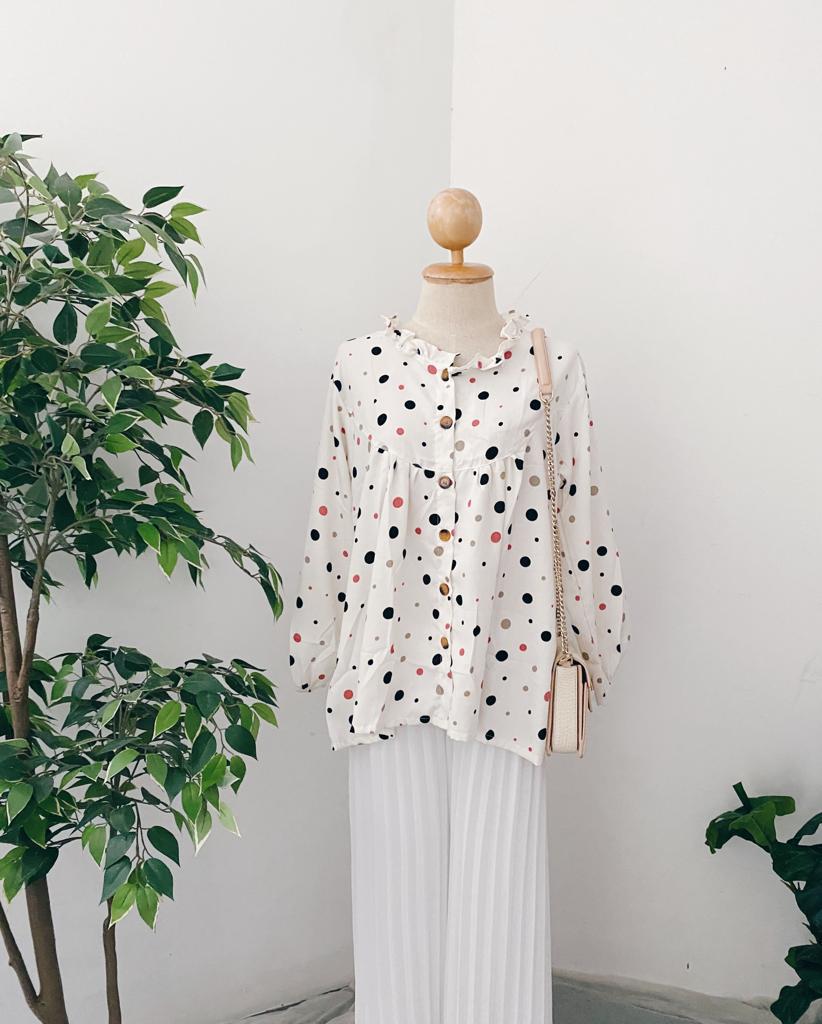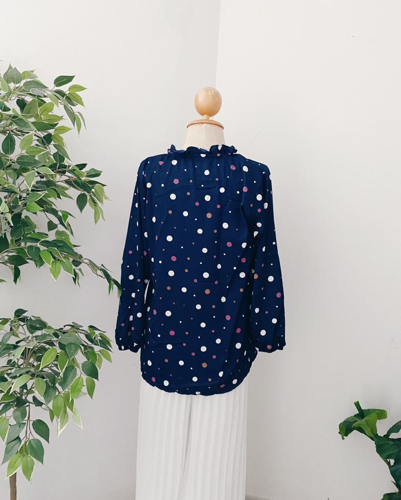 Elevate your wardrobe with the Dotty Ruffle Top, where impeccable design and precise measurements combine to create a statement piece that exudes confidence and style.