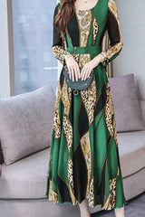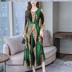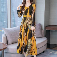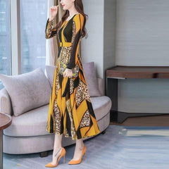 Products Details O-Neck Knee Length Long Sleeve Leopard Print Dress