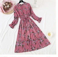 Korean Pleated Floral Dress