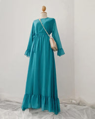 Chiffon Ruffle Maxi Dress  - Plain - Samiha Apparels