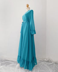 Chiffon Ruffle Maxi Dress - Plain