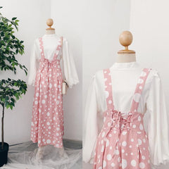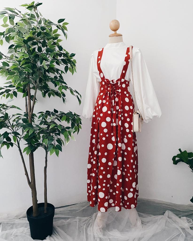 Tags: #SuspenderSkirt #Polka #FreeSize #AdjustableStripe #FunctionalButton #StretchableWaist #Polyester #Fashion #Skirt #Clothing