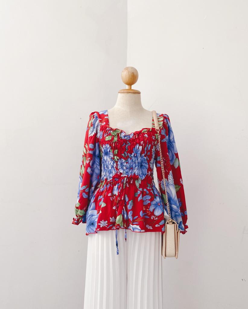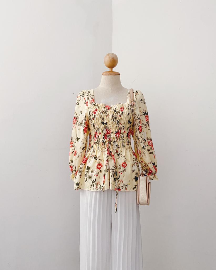 A must-have piece for every wardrobe, our Smocked Floral Top features a chic square neckline and flattering smocked bust that offers both style and comfort. Perfect for casual days or dressy evenings.