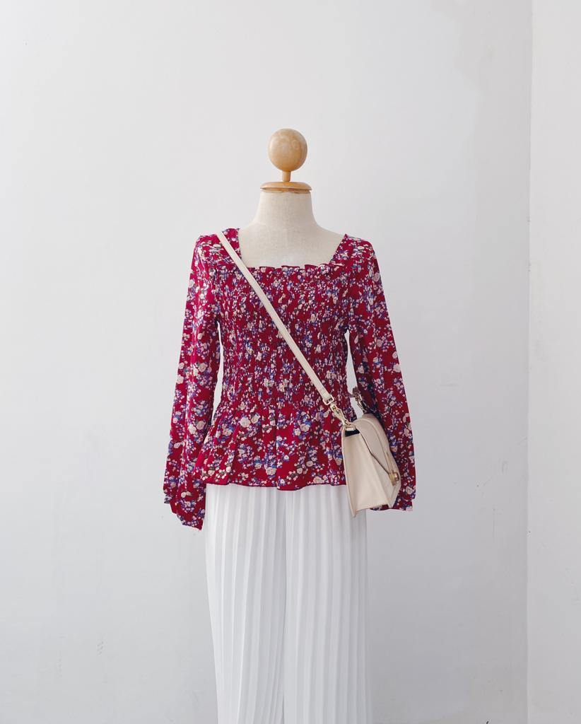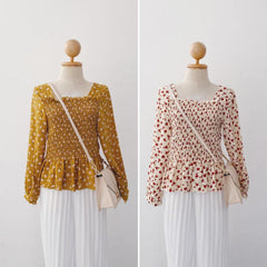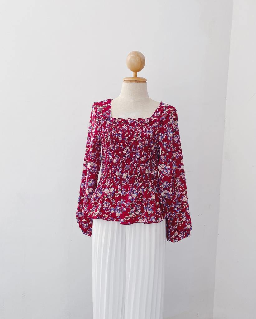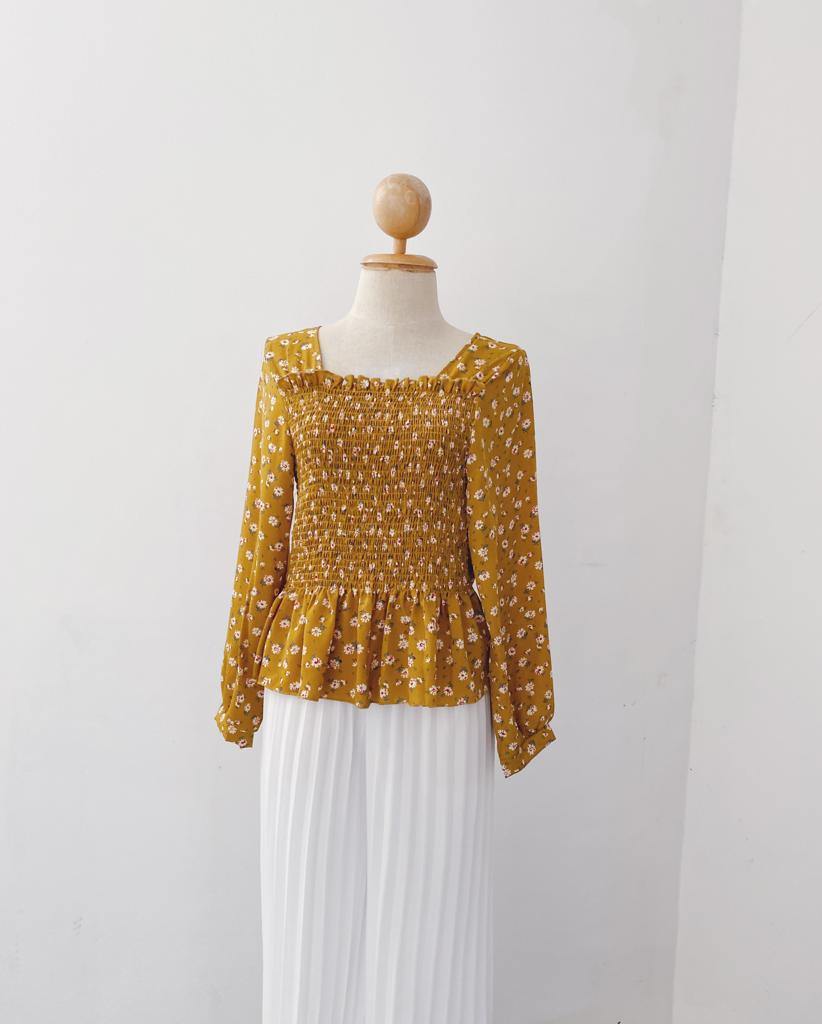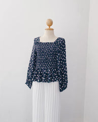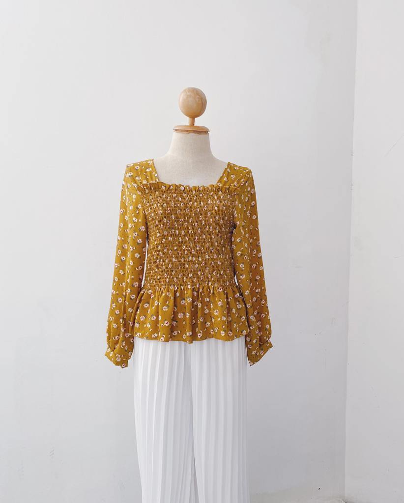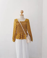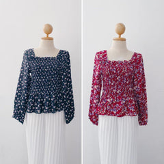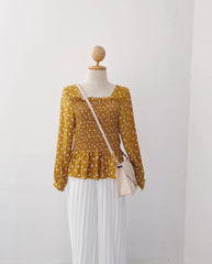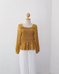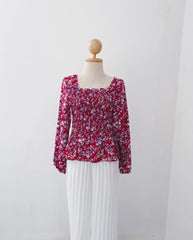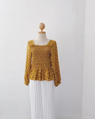 This top is designed to fit comfortably and flatter any body shape with its stretchable smocked bust. Made from high-quality Italian chiffon, it provides a soft and luxurious feel against the skin. With a shoulder measurement of 14 inches, a bust measurement of 42 inches, sleeves of 22 inches, and a length of 25 inches, this top offers a perfect fit for most body types. Get yours today and experience the comfort and style that this smocked peplum top has to offer. Contact us at +6591890489 for more details.