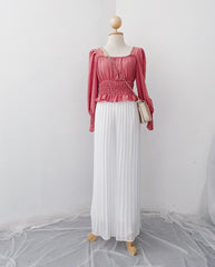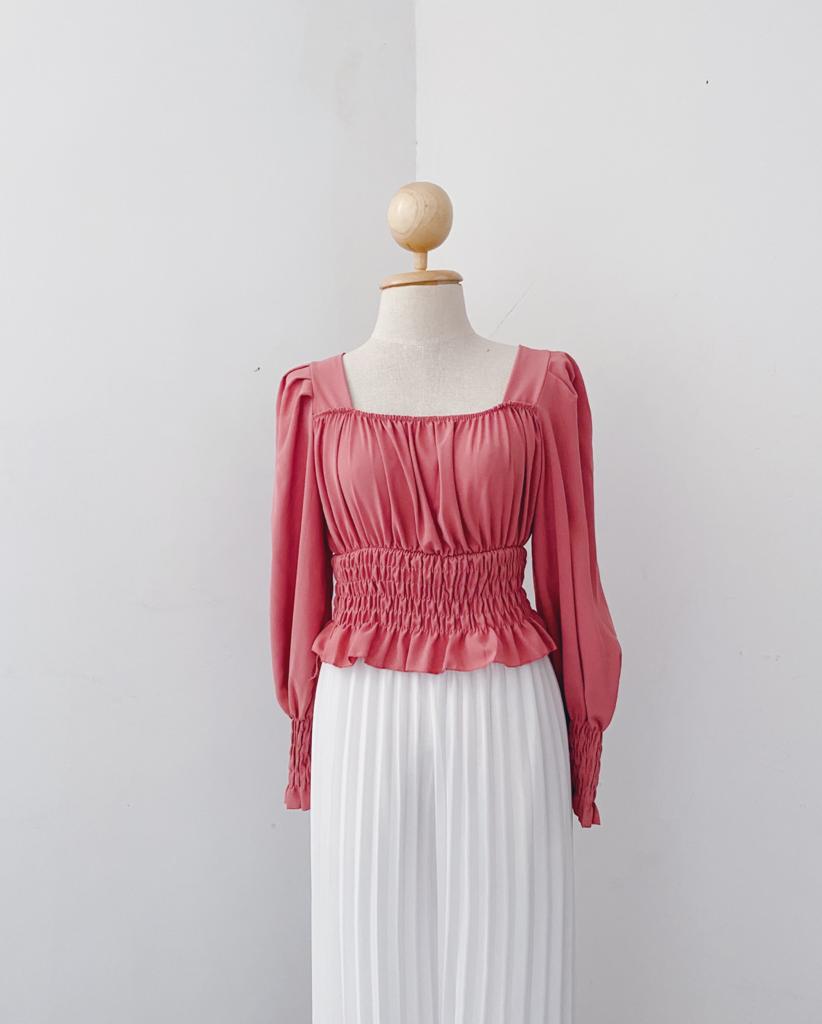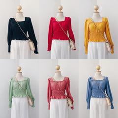 Expertly crafted from high-quality Italian Chiffon, this Smocked Top - Marigold offers a comfortable and stretchable fit with its free size and adjustable waist. With precise measurements of 14" for shoulders, 42" for bust, 22" for sleeves, and 21" for length, this top is designed to flatter your figure and provide maximum comfort. Upgrade your wardrobe with this stylish piece that will elevate any outfit. Contact us at +6591890489 for more information.