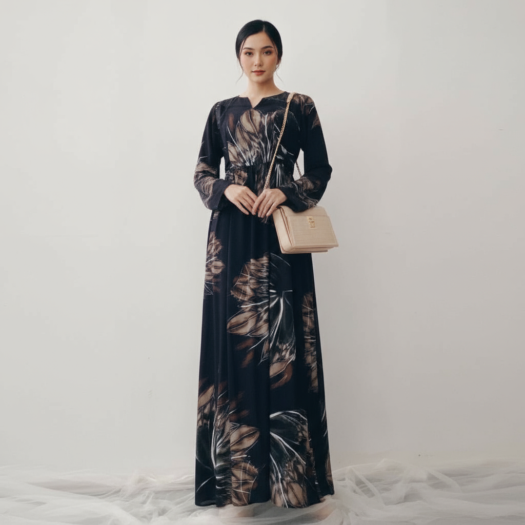 The dress features full sleeves and a full length, making it the perfect choice for any occasion. The size of the dress in the image is approximately: