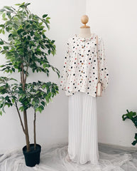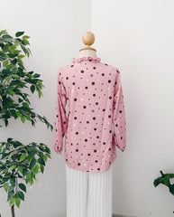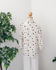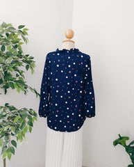Elevate your wardrobe with the Dotty Ruffle Top, where impeccable design and precise measurements combine to create a statement piece that exudes confidence and style.