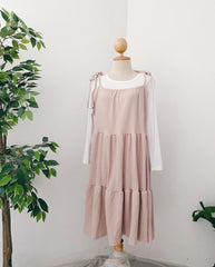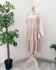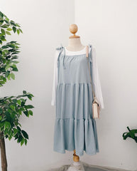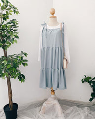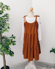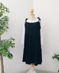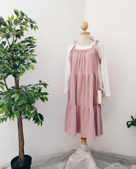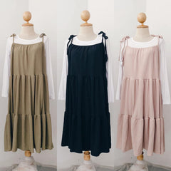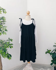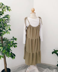 Effortlessly stylish and breathable, our Tiered Slip-On Midi Dress is your new go-to for comfort and charm! With a flattering ribbed texture and adjustable tie straps, it suits various heights and occasions.L