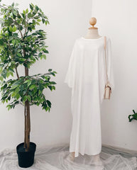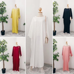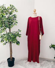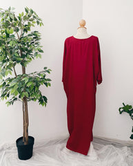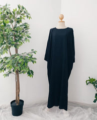 The Dania Kaftan is your go-to modest wear essential for everyday elegance and practicality. Designed with a classic round neckline, this free-size kaftan features a wide 56” body width for a flattering drape on various body types. With its ironless crinkle material, you’ll enjoy a polished look with zero fuss—perfect for busy days or travel.