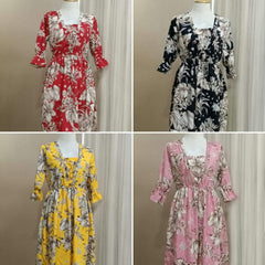 Step out in effortless elegance with the Printed Dress - Sharon, crafted from soft, flowy polyester blended crepe silk. Lightweight and breathable—ideal for warm weather or casual layering.