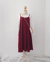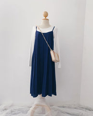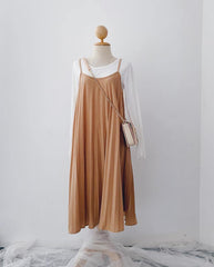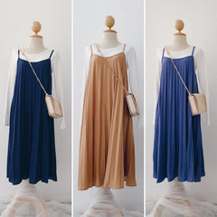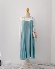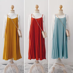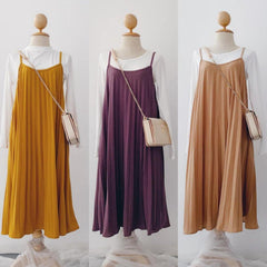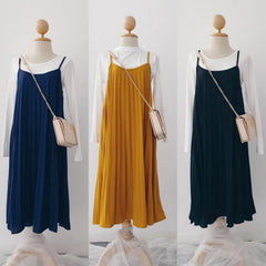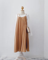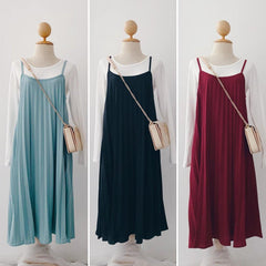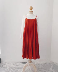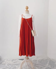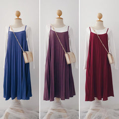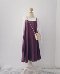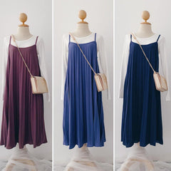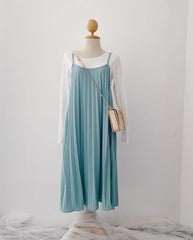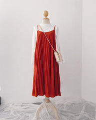 Pleated Slip-On Midi Dress