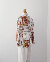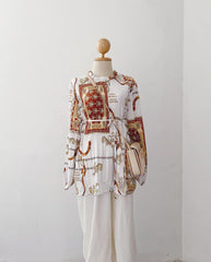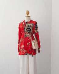 Pleated Ruffle Neck Top – Batik | Elegant Heritage-Inspired Look
