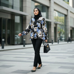 Designed for graceful layering, the Zahira Gathered Kimono Top is all about relaxed elegance. The gathered waist creates a flattering silhouette, while the breathable crepe fabric makes it perfect for everyday wear.