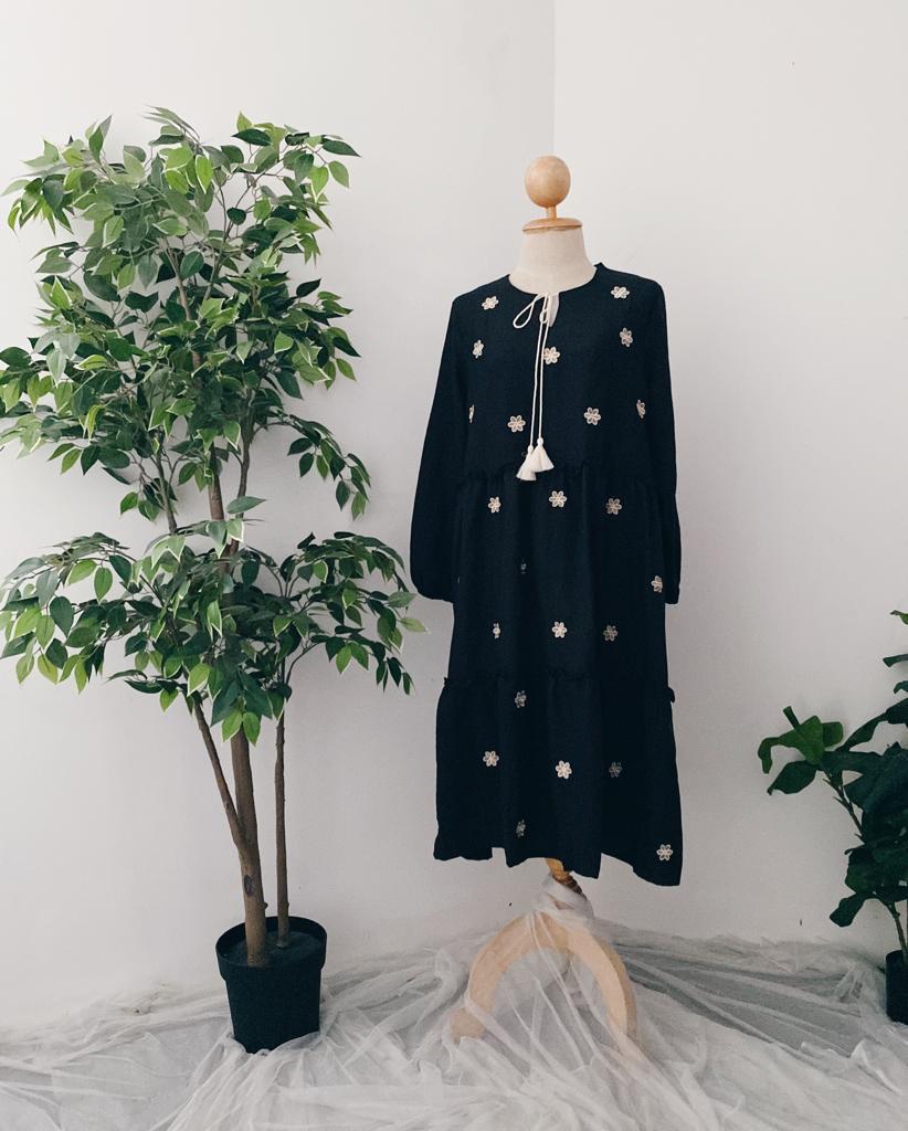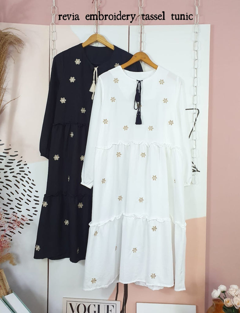 Unlock effortless style and comfort with the Revia Embroidery Tessal Tunic. This versatile piece boasts a free size, round neck design with precise measurements of 40cm shoulder, 42" bust (PTP 55cm), 60cm sleeve, and 112cm length, all made with top quality Tessal material. Get yours now and elevate your wardrobe with ease.