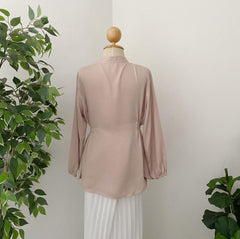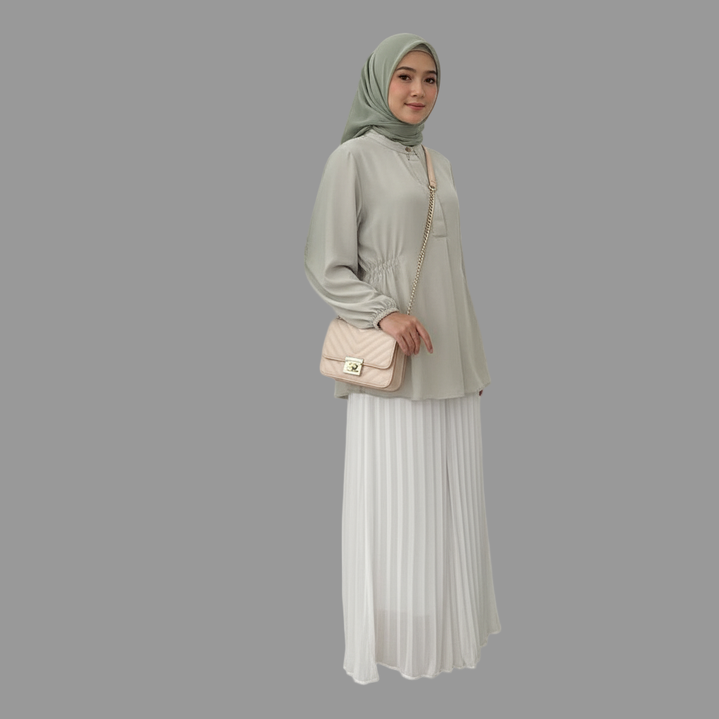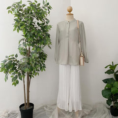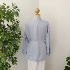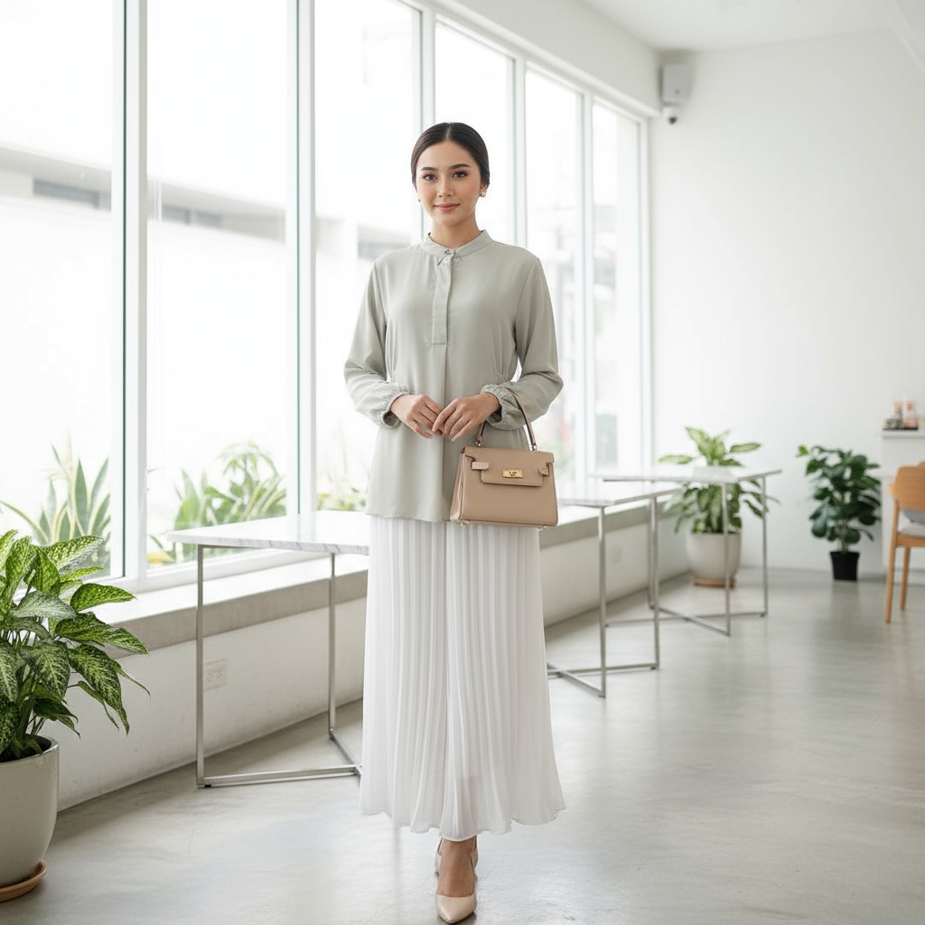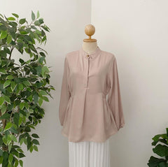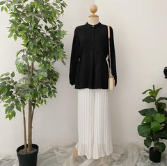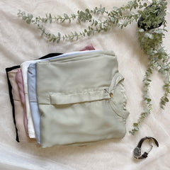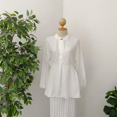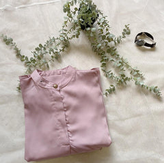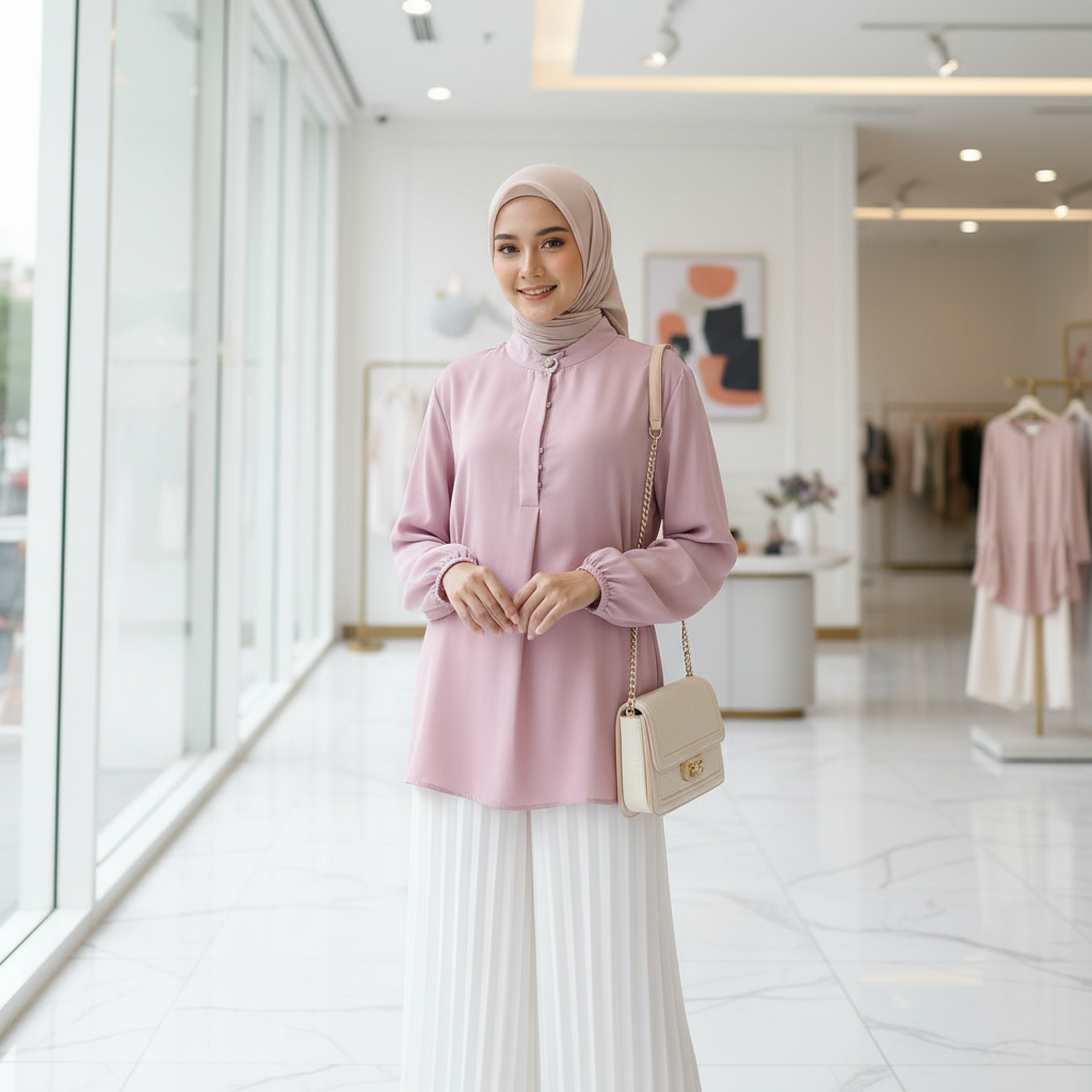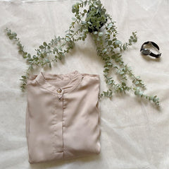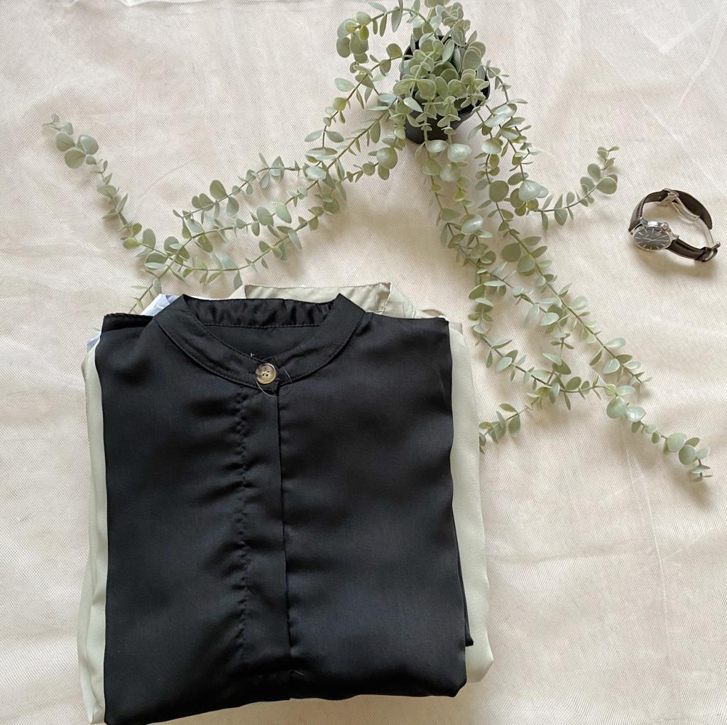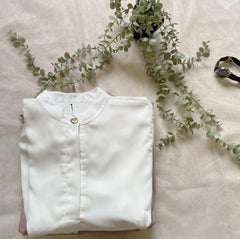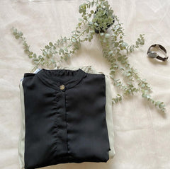 A modest polo top designed for modern living. Its elegant mandarin collar and functional buttons make it both stylish and practical.