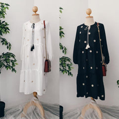 Unlock effortless style and comfort with the Revia Embroidery Tessal Tunic. This versatile piece boasts a free size, round neck design with precise measurements of 40cm shoulder, 42" bust (PTP 55cm), 60cm sleeve, and 112cm length, all made with top quality Tessal material. Get yours now and elevate your wardrobe with ease.
